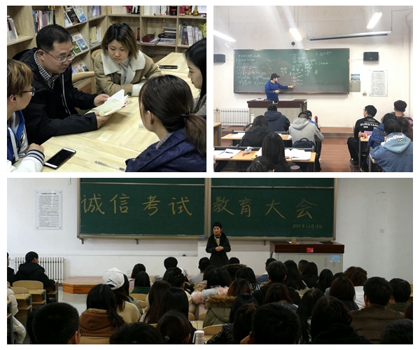 学院成立学风建设工作领导小组,定期召开学风建设推动会,实施“十抓十促”学风建设工程,全面夯实学风建设基础,及时掌握学生学风建设基本情况,及时发现并解决问题;临近期末,在教学区会经常看到学院教学副院长解柠羽与辅导员深入各年级课堂开展考风考纪教育宣讲的身影,让同学们切实意识到诚信考试的重要性,倡导全体学生诚信考试、诚信做人。