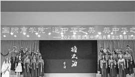 学生在铸牢中华民族共同体意识教育月中进行朗诵大赛。