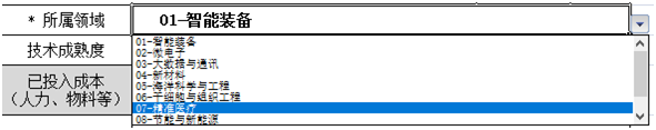 1、按照要求填写附件2,每表填写一个项目,项目简介包含成果概述、技术及产品特点、应用领域、产能及主要经济技术指标、投入需求等,可图文并茂,字数300~500字以内,图片3~4张,分辨率为150dpi。带“*”标识的请点击下拉菜单选择内容,如图: