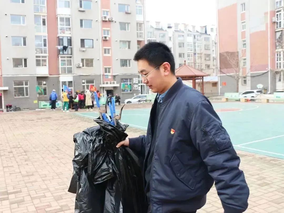 针对社区中难以清理的烟头、碎玻璃、包装纸等垃圾,志愿者们拿起工具深入到各个角落,所过之处留下的都是整洁干净的路面,得到了社区保洁阿姨的大力点赞。