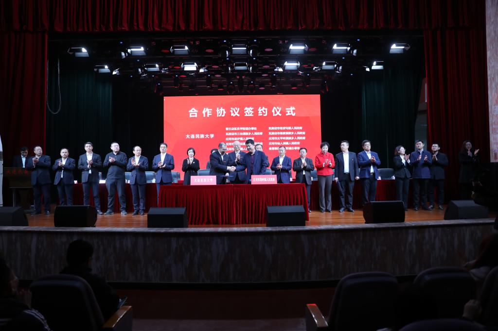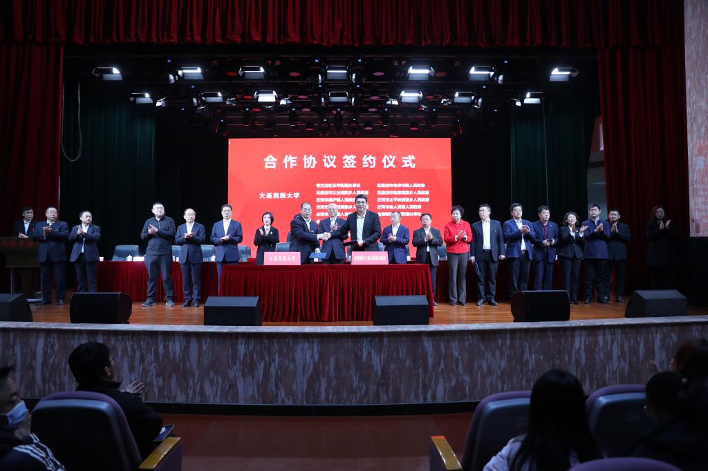 赵铸表示,国家民委高度重视学校与地方开展校地合作,此次签约是继学校与辽宁省民宗委和大连市民宗局、与省内八个民族自治县合作协议签约仪式成功举行后,学校深化校地合作的又一次重要活动。是学校党委深入贯彻落实党的二十大精神,贯彻落实中央民族工作会议精神,贯彻落实习近平总书记关于东北、辽宁、大连振兴发展的重要讲话和指示批示精神,以及关于铸牢中华民族共同体意识系列重要论述,贯彻落实国家民委党组和辽宁省委省政府、大连市委市政府部署要求的重要举措,是大力推进服务辽宁、服务大连全面振兴的“姊妹篇”。长期以来,学校的发展离不开大连市委市政府的关心重视,离不开市民宗局及各乡(镇、街道)的帮助支持。新时期,学校肩负着服务党的民族工作,服务铸牢中华民族共同体意识的光荣职责,承担着服务辽宁和大连全面振兴的重要使命。学校将以签约仪式为校地合作新起点,全面深化与各乡(镇、街道)合作,加强资源共享、优势互补、互利共赢,最大限度调集和动员全校优势力量,在铸牢中华民族共同体意识、科技创新、特色农业及文旅产业发展、干部培训、党的建设等方面深化更多成果,在携手服务辽宁全面振兴新突破三年行动和大连“两先区”“三个中心”高质量发展中实现共谋发展、合作共赢。