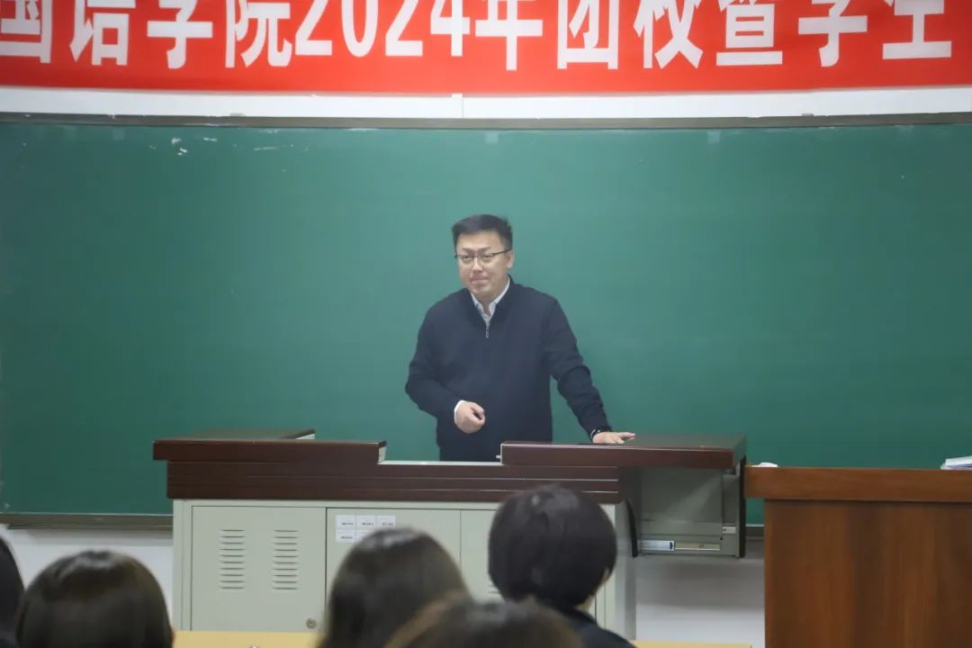 外国语学院党委书记刘煜代表学院党委向全体团员提出三点希望和要求:以信仰之辉,助燃青春奋发的燎原星火;以勤学之志、淬炼青春闪耀的烈火真金;以实干之行,谱写青春建功的壮丽篇章。党旗所指就是团旗所向,在讲话最后刘煜书记要求学院团委能够团结带领广大青年团员、学生会、班级团支部和学生社团,强化团员意识,明确团员政治身份,持续健全完善“班团一体化”,突出以团支部为核心的班集体建设,加强团支部管理,更好团结带领广大青年奋进新征程、建功新时代,在全方位、高标准锻造中焕发共青团昂扬向上的精神风貌,奋力书写新时代中国青年运动和青年工作的壮丽篇章。